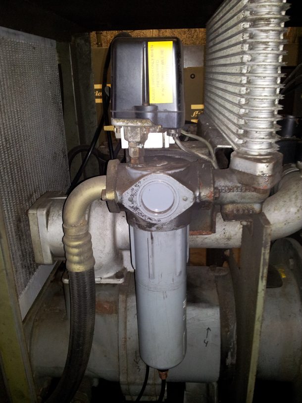 我們需要從壓縮空氣中除去水,以防止損壞我們的壓縮空氣。我們通過簡單的冷凝水收集器和冷凝水排放來實現這一點。